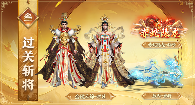 参与活动即有机会获取限定称号——“赤蛇隐龙”!珍品坐骑幻化——“敖丙”,珍品时装外显——“金陵云锦”!