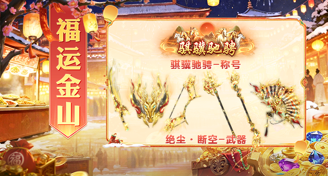 金驹送福,共贺新年!春节骐骥迎春活动盛大开启,每日登录即有五彩晶石、紫镖令等珍稀好礼相随!福运金山惊喜降临,挖宝即有机会获得全新限定武器外显 “绝尘·断空” ,集齐共鸣 “骐骥套装” 还可激活专属生存技能 “金戈铁马” ,解锁超稀有限定称号!更有机会定制专属年度人物图鉴,英姿载入史册,荣光全服共鉴!更有战力年兽惊喜现身、免费转职畅玩阵容、天降鸿福爽拿红包等福利连番放送!新春聚福,等你来玩!