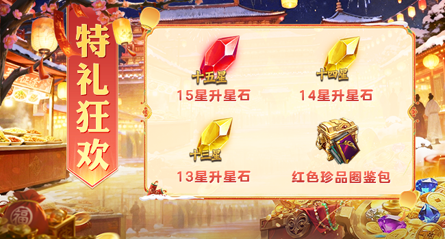 参与即有概率获取到12星升星石,特礼积分等奖励。